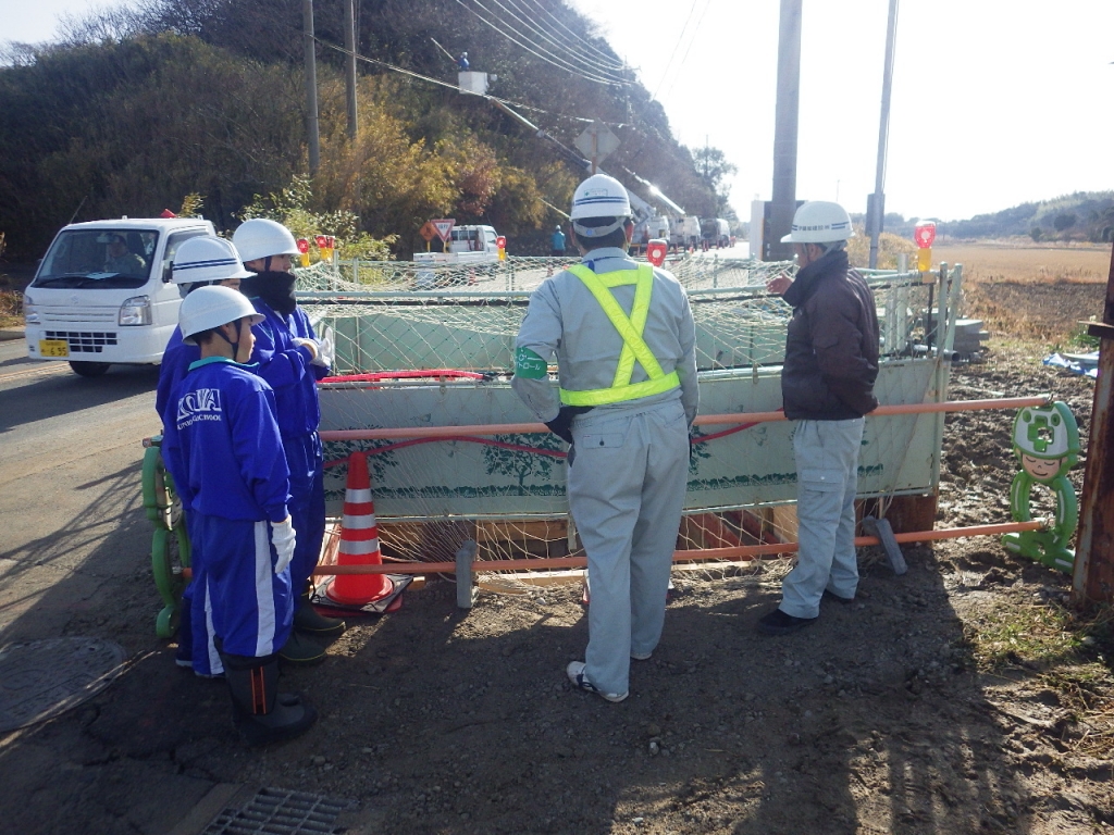 各現場で現場責任者から、工事の内容や注意していることなどの