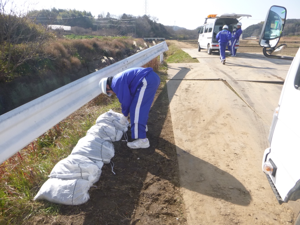 皆が頑張って作った土嚢は、早速現場で役に立っています!